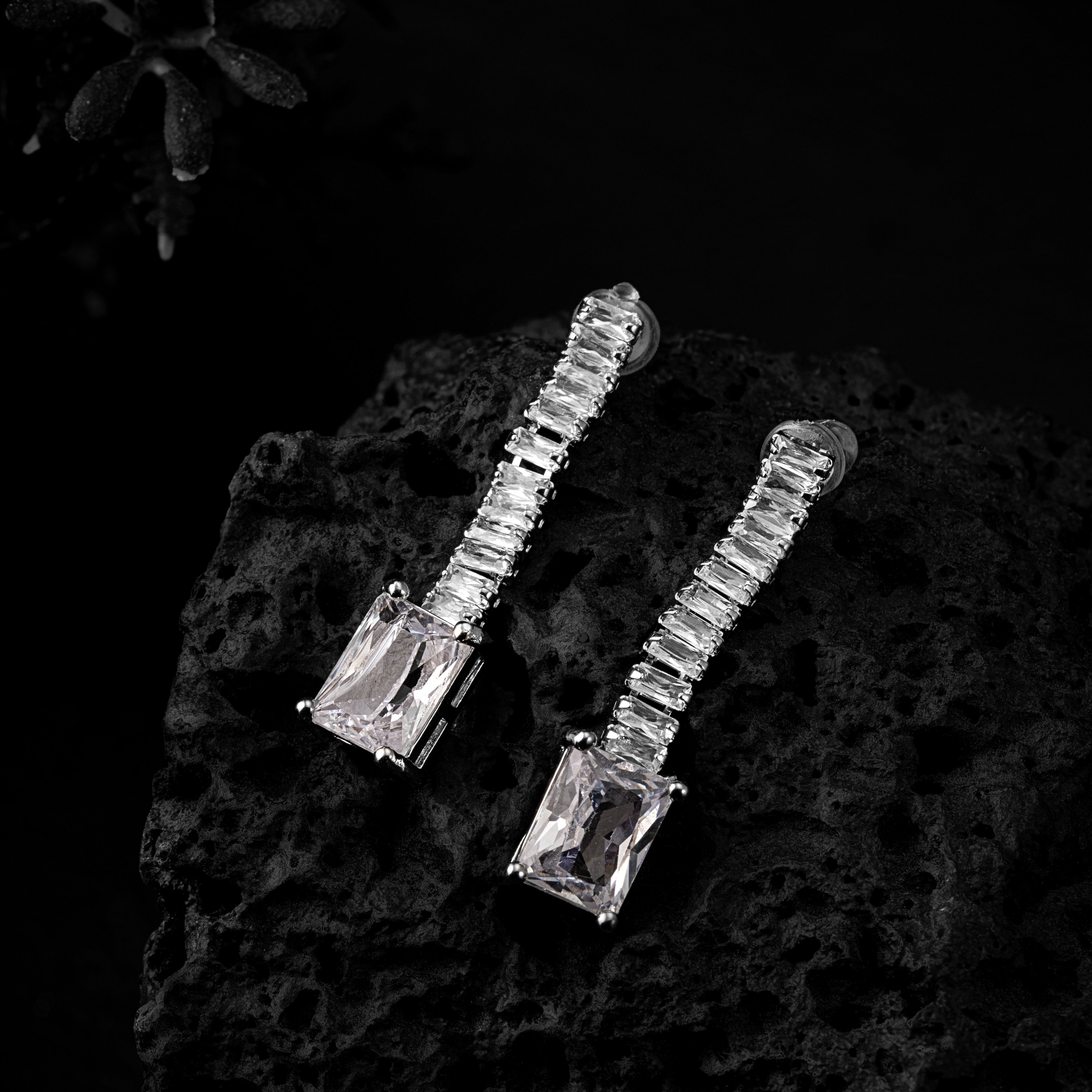 Perfect for formal occasions, evening wear, or gifting, this Rhodium-plated jewellery set combines classic charm with contemporary elegance.